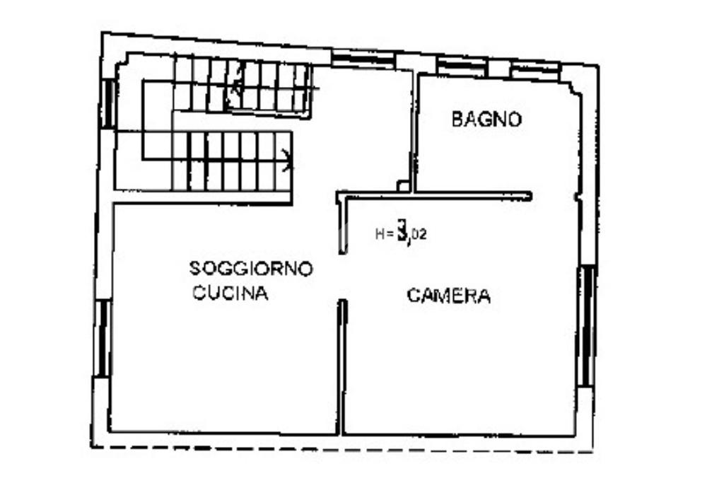 Affittasi bilocale di 40 mq al primo piano di una piccola palazzina senza condominio, composta da sole tre unità abitative.