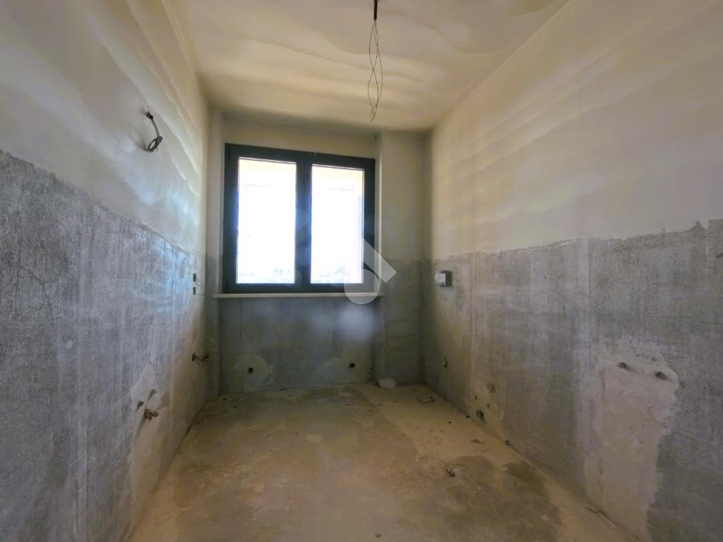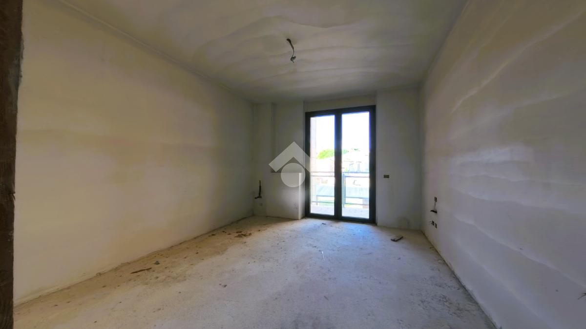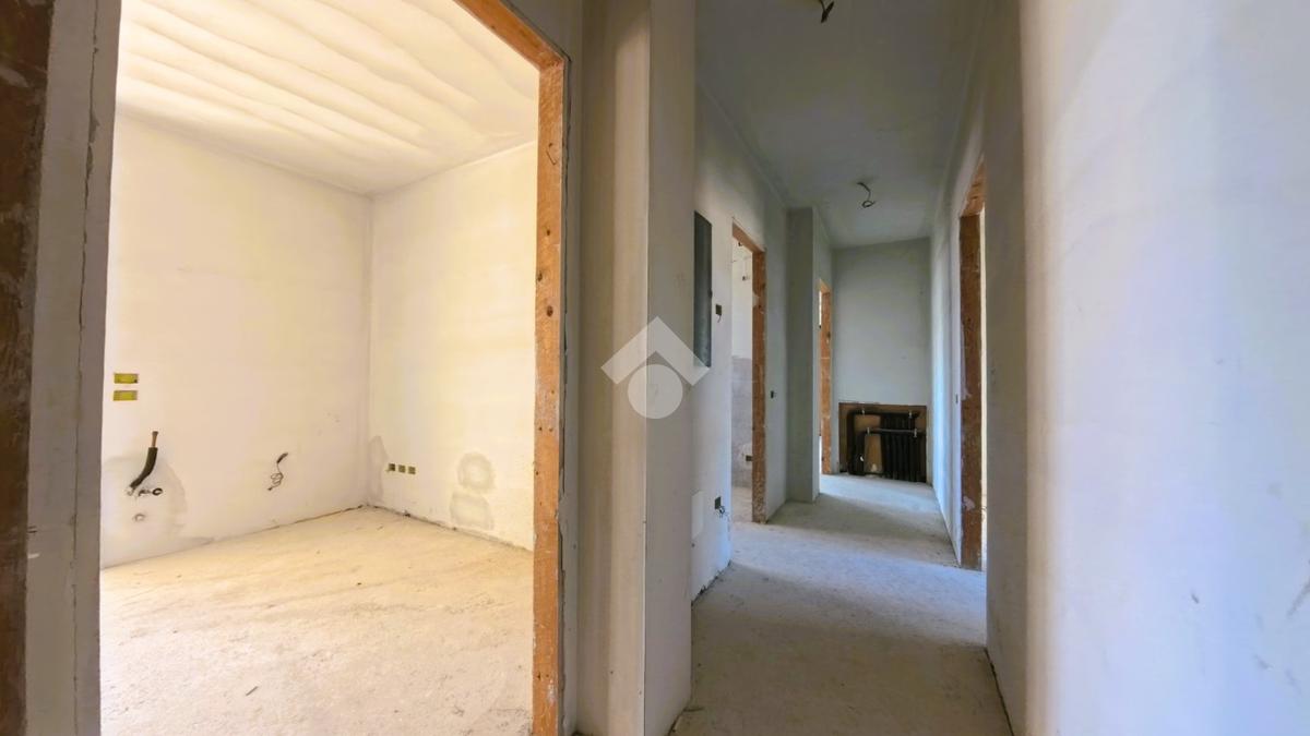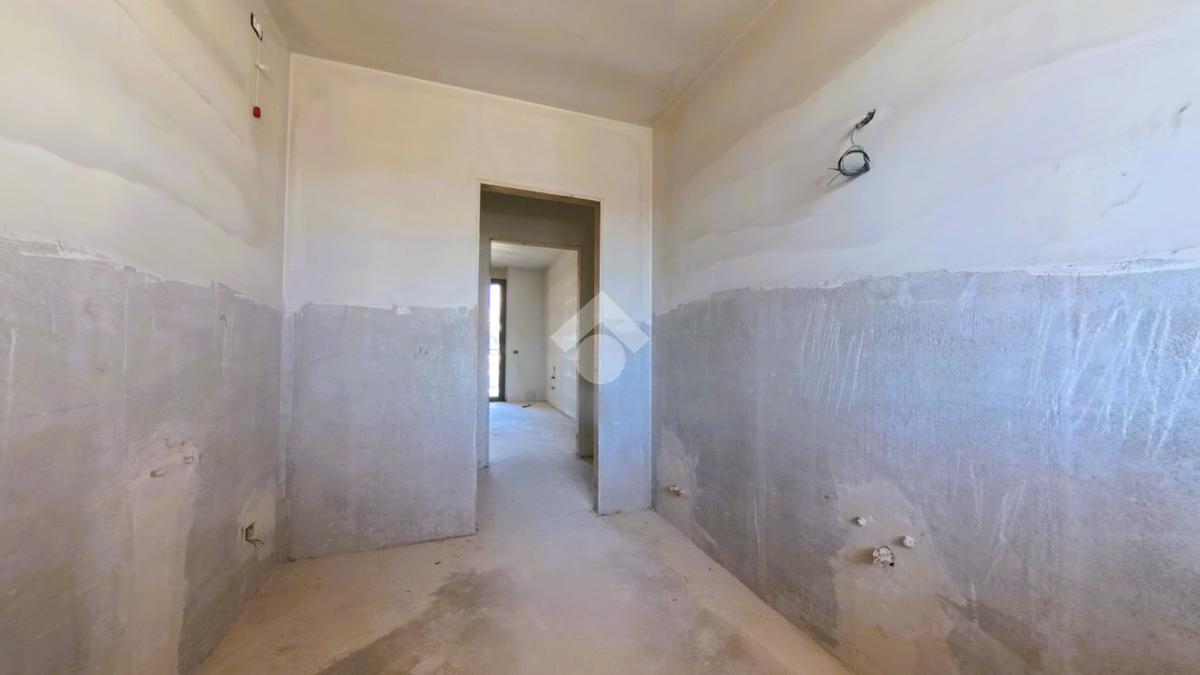 L'appartamento si presenta grezzo nelle finiture, ma già presente: impianto elettrico, impianto riscaldamento/raffreddamento, predisposizione domotica, infissi SCHUCO, portone blindato.