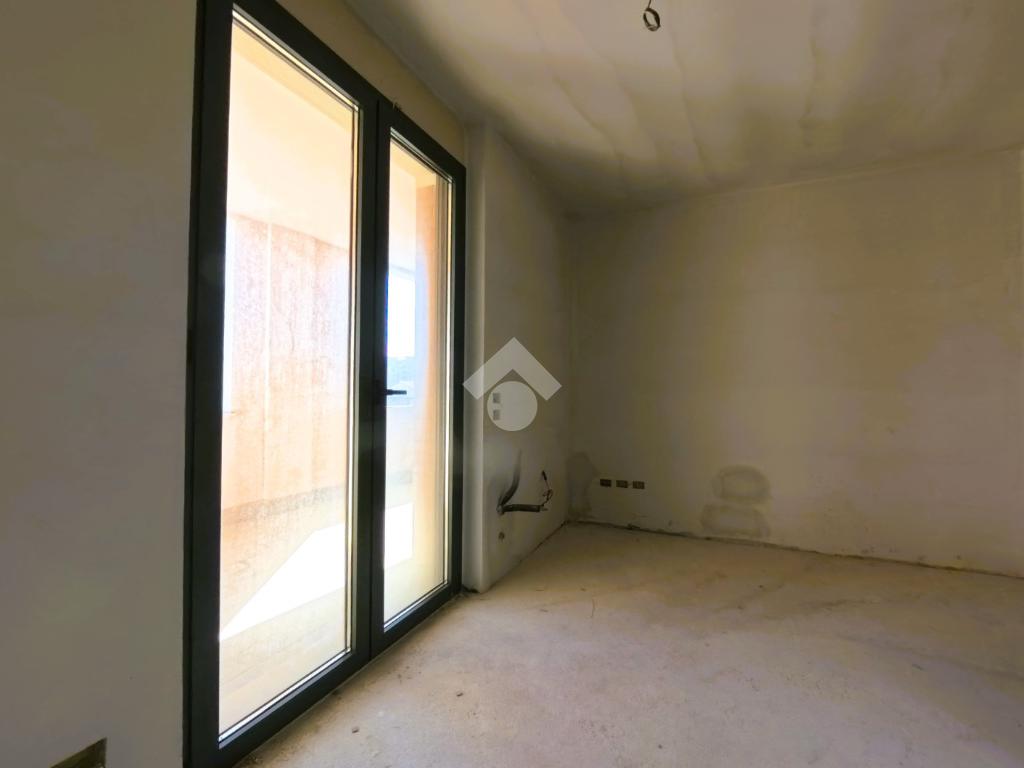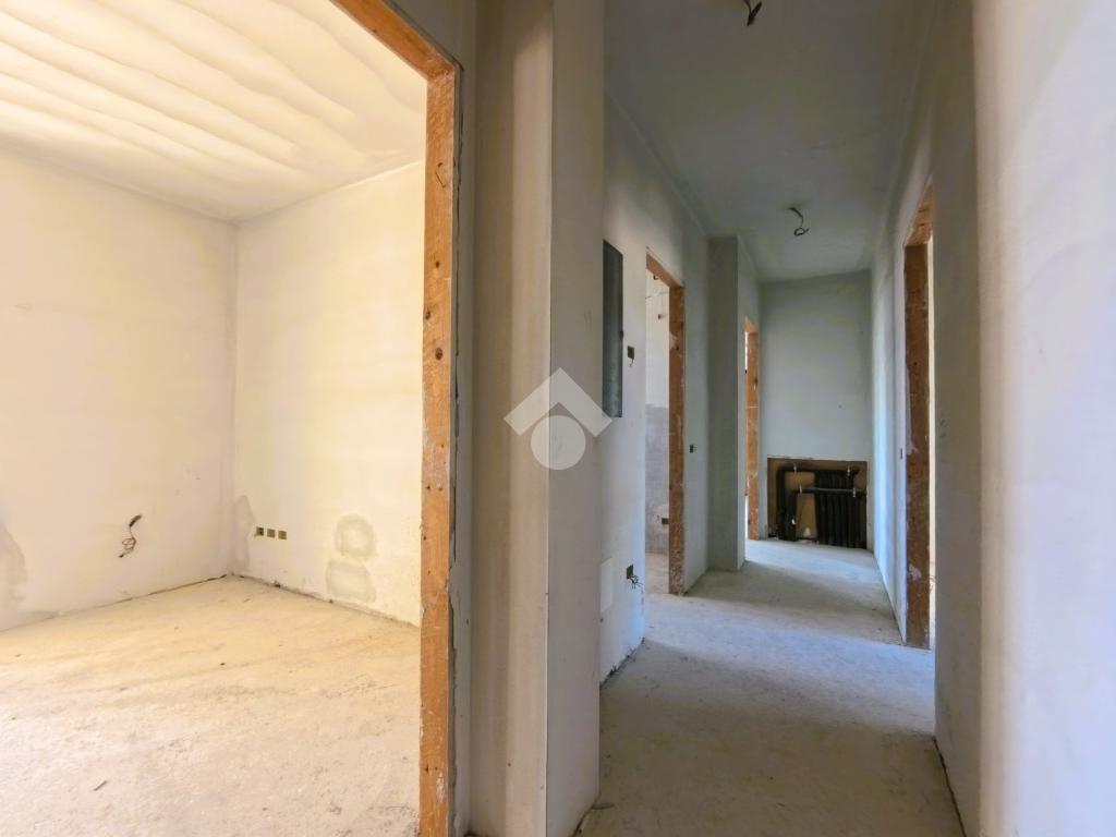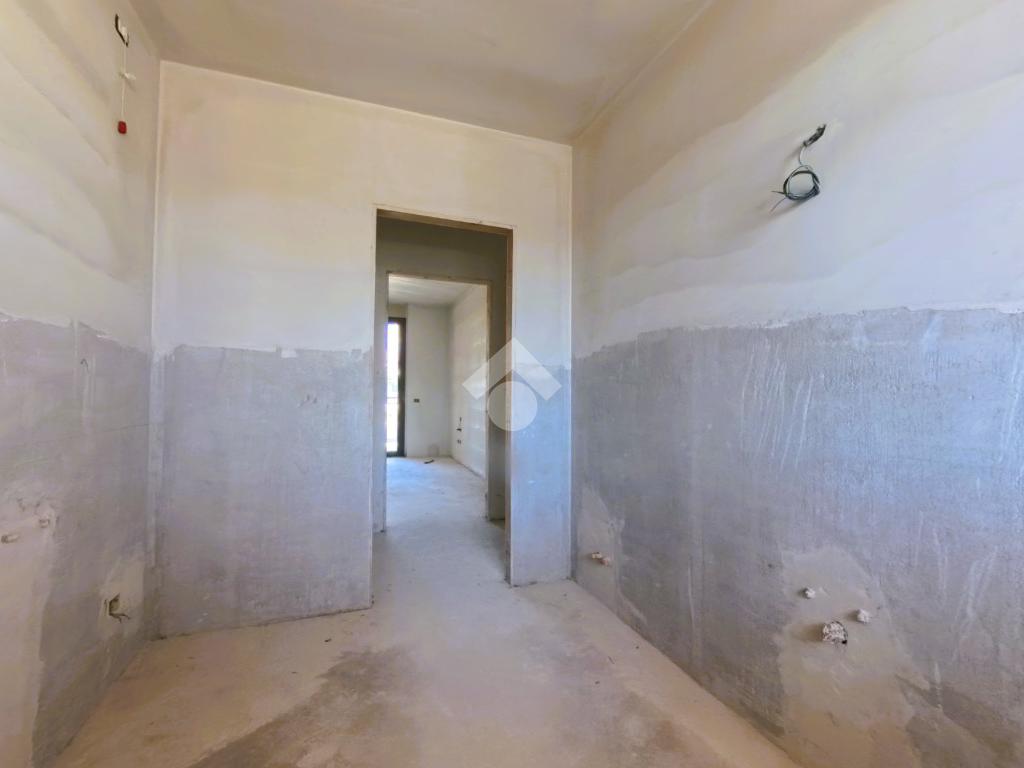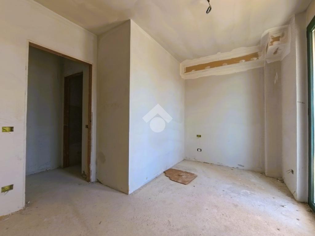 L'appartamento si presenta grezzo nelle finiture, ma già presente: impianto elettrico, impianto riscaldamento/raffreddamento, predisposizione domotica, infissi SCHUCO, portone blindato.