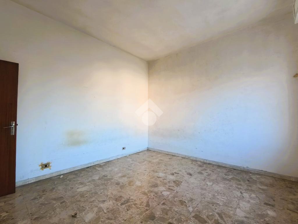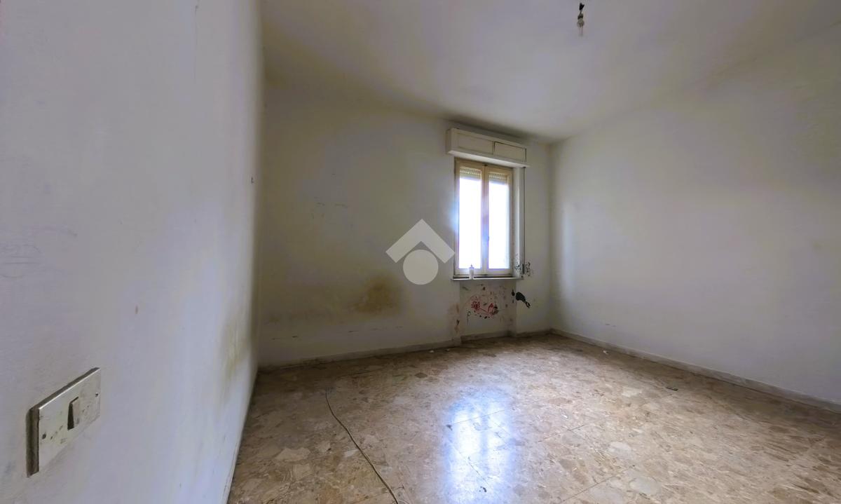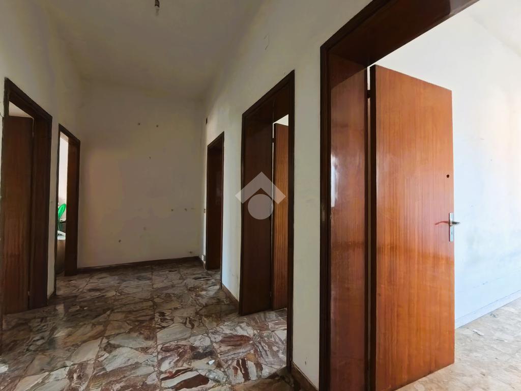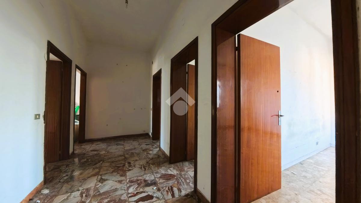 Il quadrilocale del primo piano, da ristrutturare, ha la zona giorno esposta a sud con affaccio sul balcone, sala da pranzo con tinello e soggiorno; completano l'immobile due camere da letto matrimoniali ed un bagno finestrato.