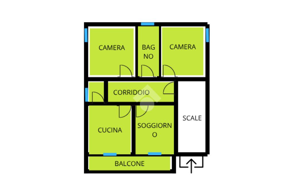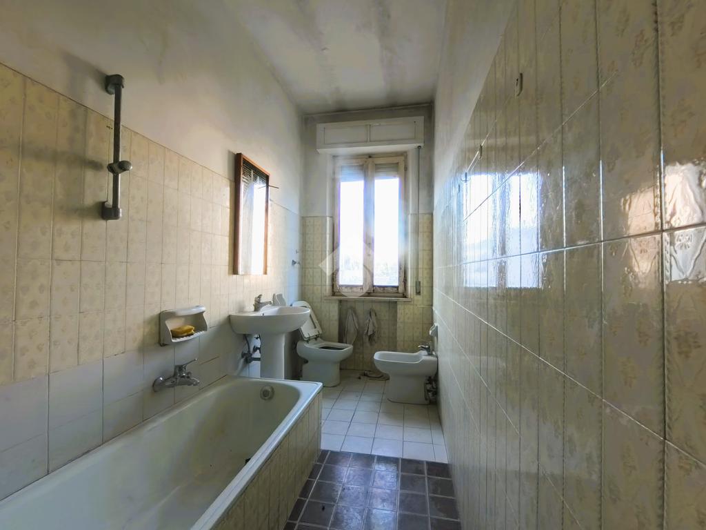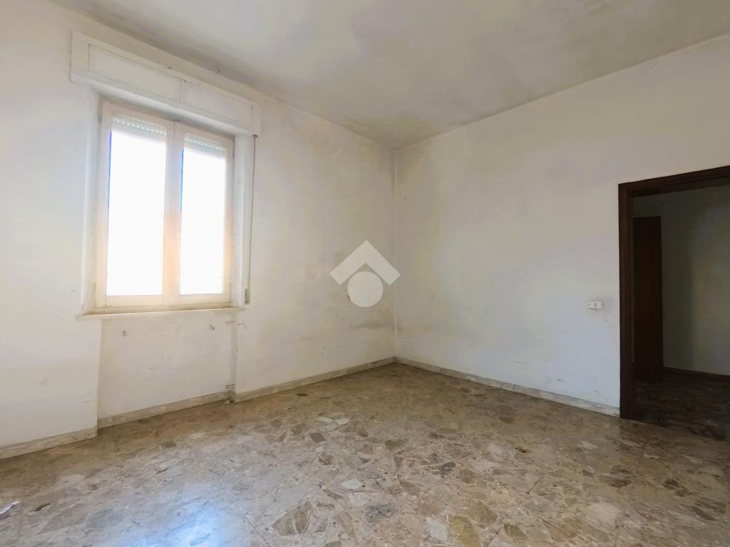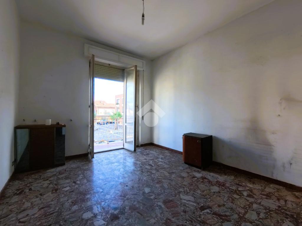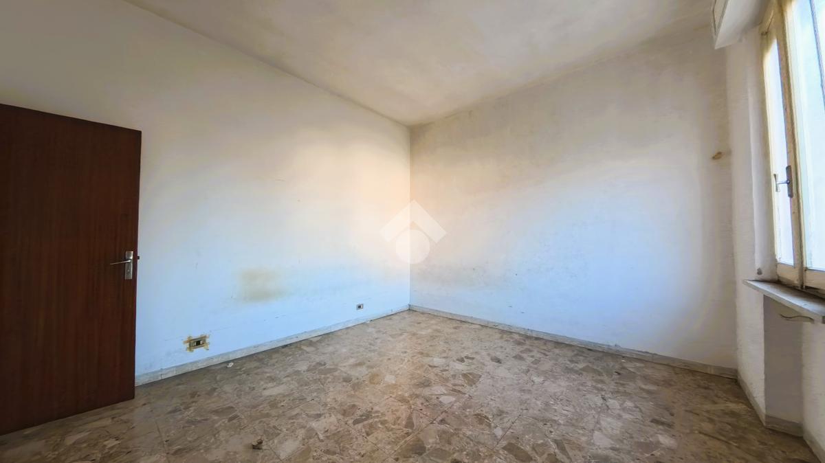 Il quadrilocale del primo piano, da ristrutturare, ha la zona giorno esposta a sud con affaccio sul balcone, sala da pranzo con tinello e soggiorno; completano l'immobile due camere da letto matrimoniali ed un bagno finestrato.