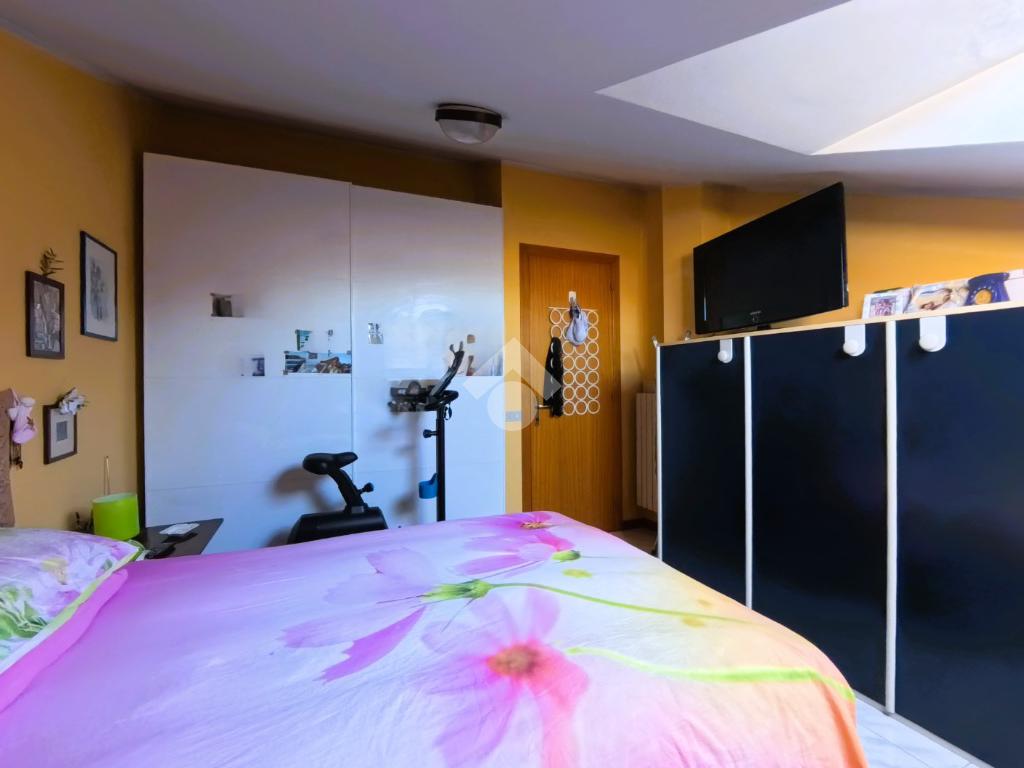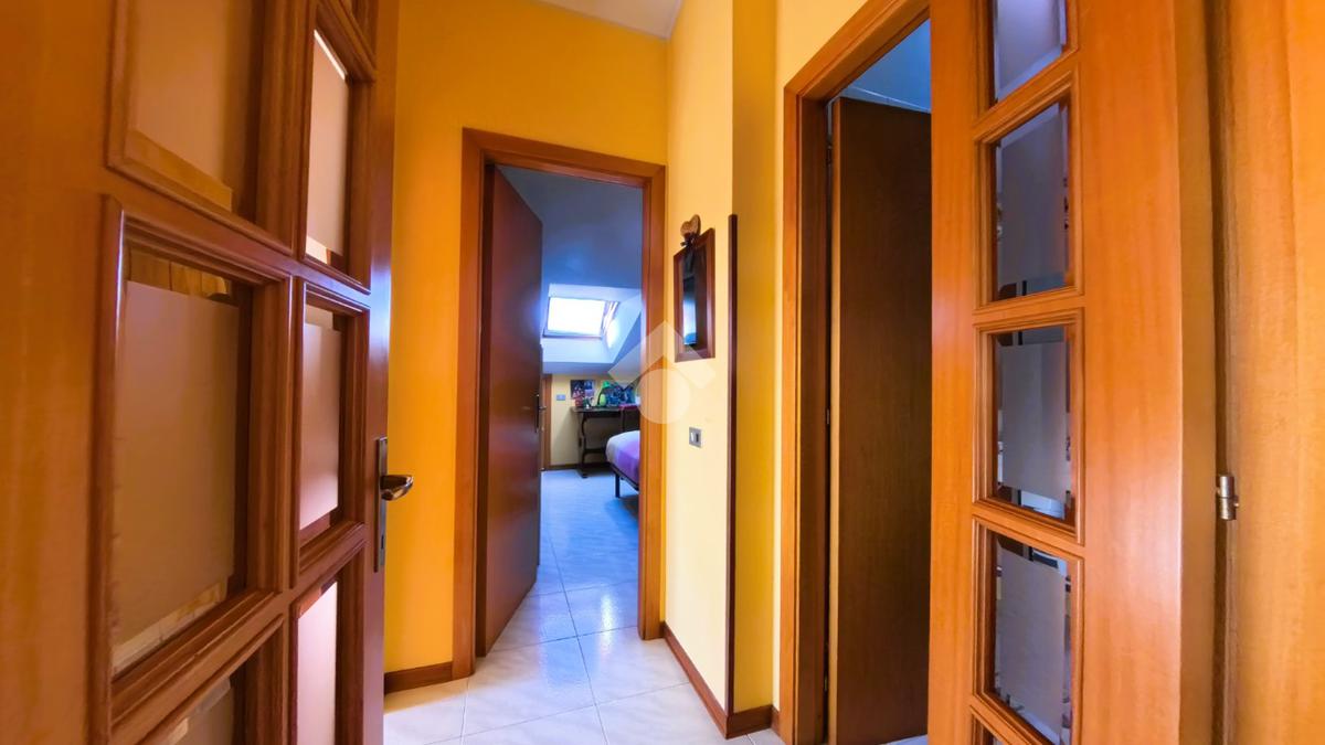 Il trilocale, ha ingresso su un ampia e luminosa zona living: con angolo cottura, camino e porta finestra per accedere al balcone con vista monti; dal corridoio raggiungiamo la zona notte: con due camere matrimoniali ed un bagno finestrato molto comodo con box-doccia e vasca. presenti su gran parte del perimetro dell'abitazione dei ripostigli.