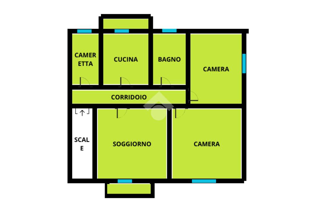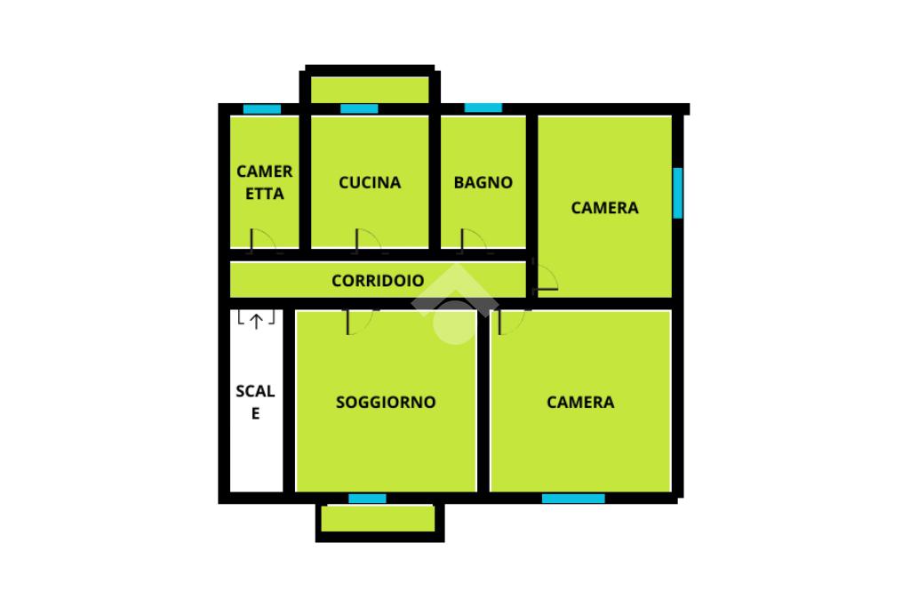 L'appartamento, di 108 mq circa, esposto su tre lati e molto luminoso, si presenta allo stato originale, con cucina abitabile separata, servita da balconcino, soggiorno anch'esso con balcone, due stanze da letto matrimoniali molto grandi, una cameretta/studio, ed un bagno finestrato con vasca;