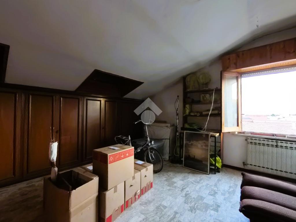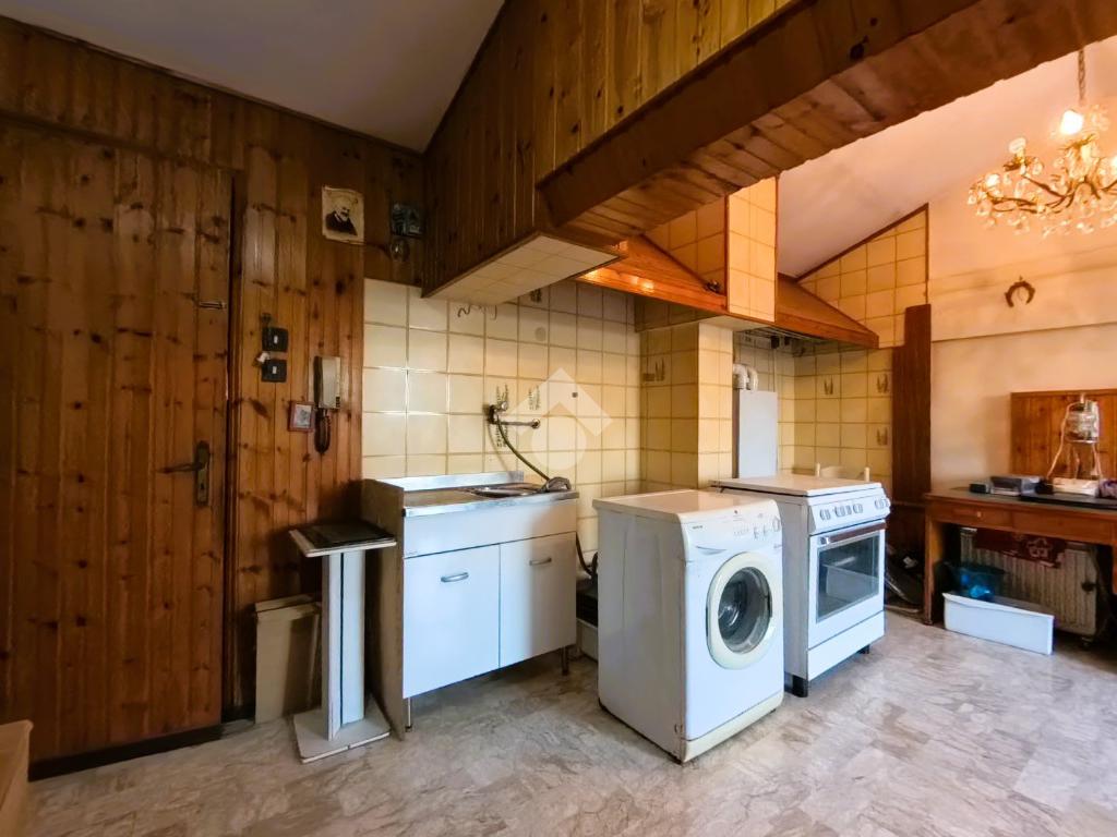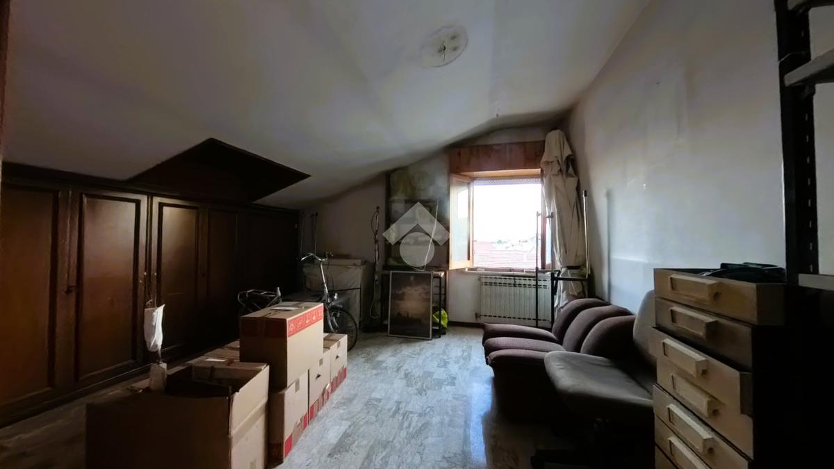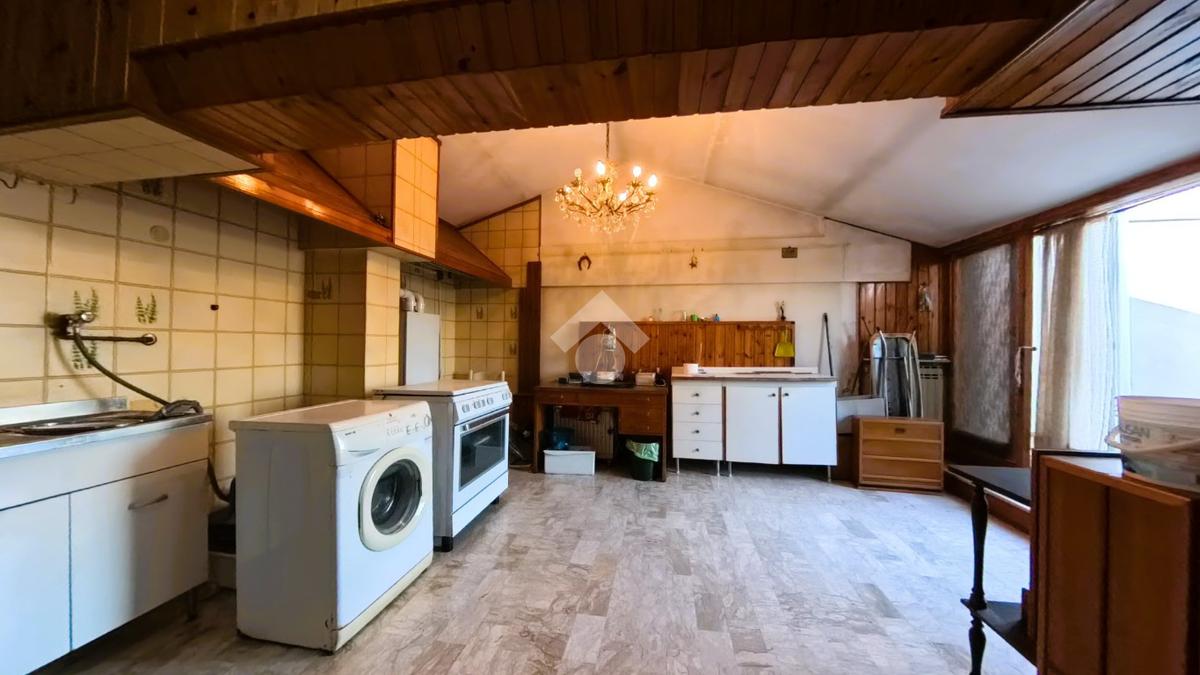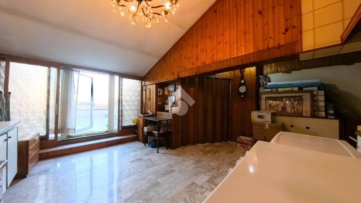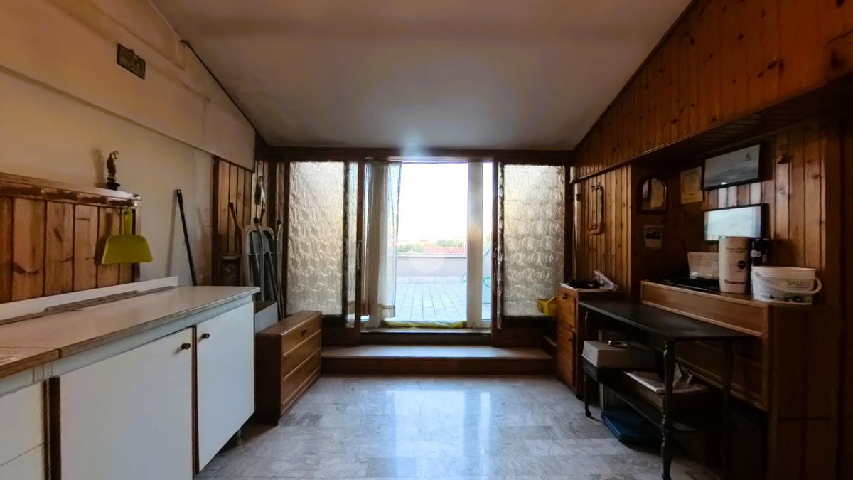 La mansarda si compone di una zona giorno unica con affaccio sul terrazzo abitabile esposto ad est, un bagno con velux e box-doccia ed una camera matrimoniale.