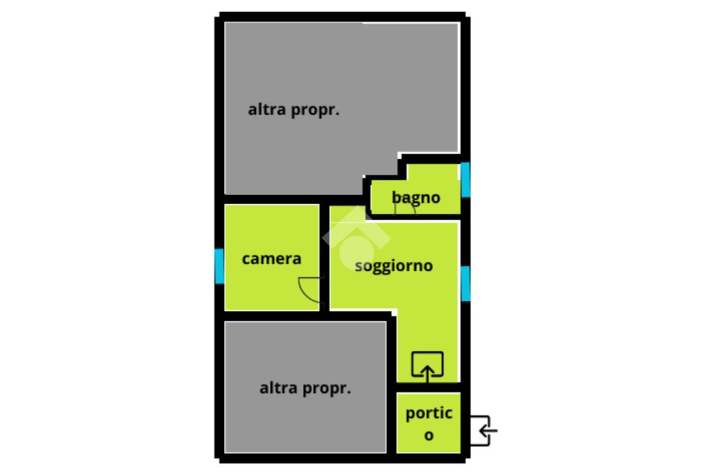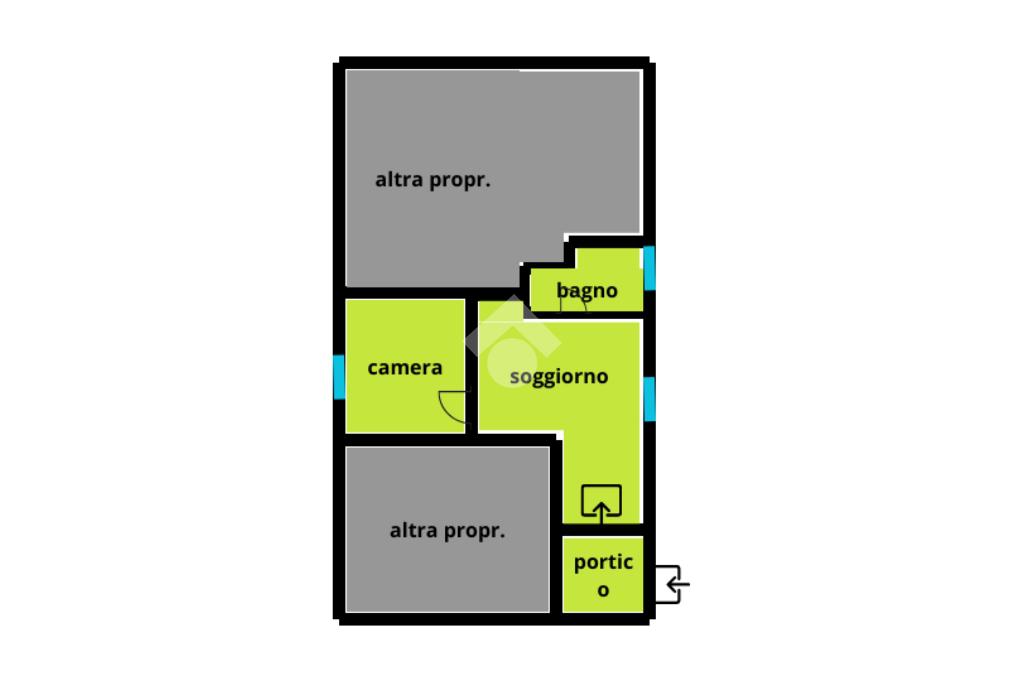 L'immobile ha accesso da corte condominiale su un vestibolo chiuso con cancello in ferro battuto, utile e funzionale come piccolo ripostiglio; dal portone blindato si entra nella zona giorno open space con angolo cucina, accogliente e luminosa, segue una stanza da letto matrimoniale ed un bagno finestrato con box-doccia.