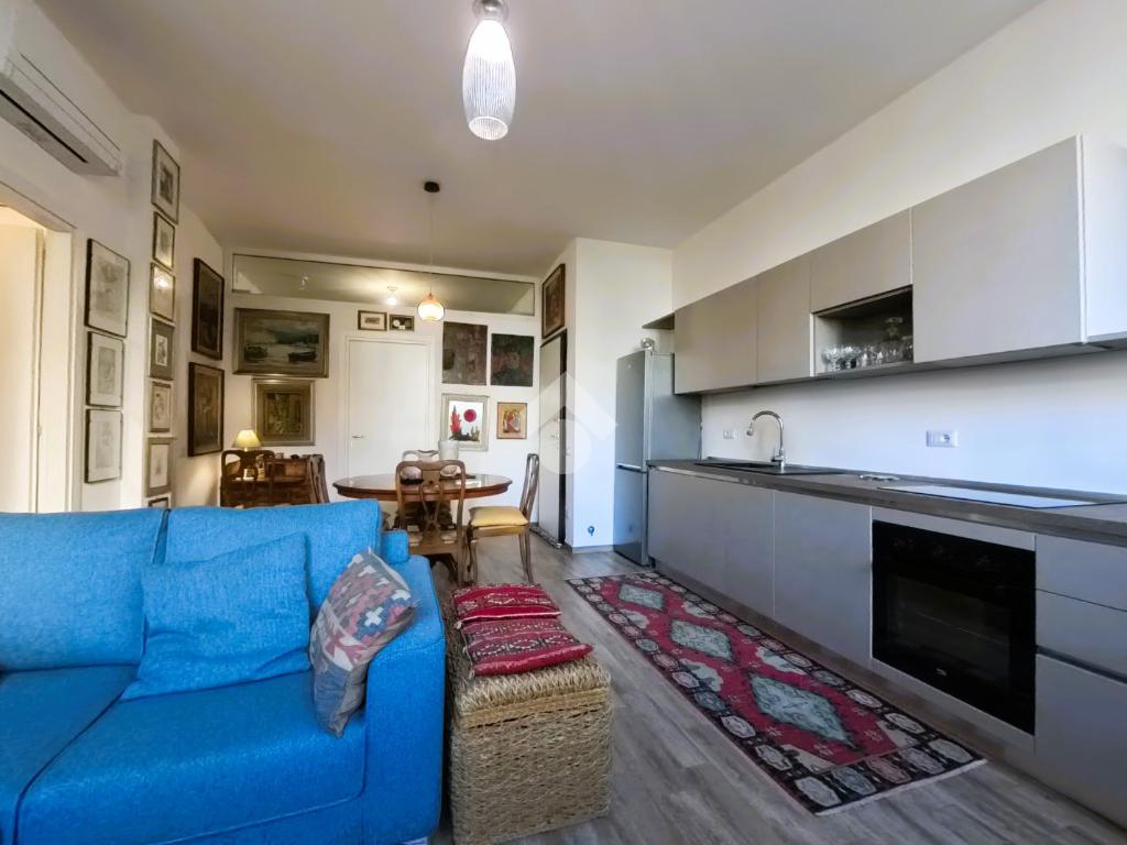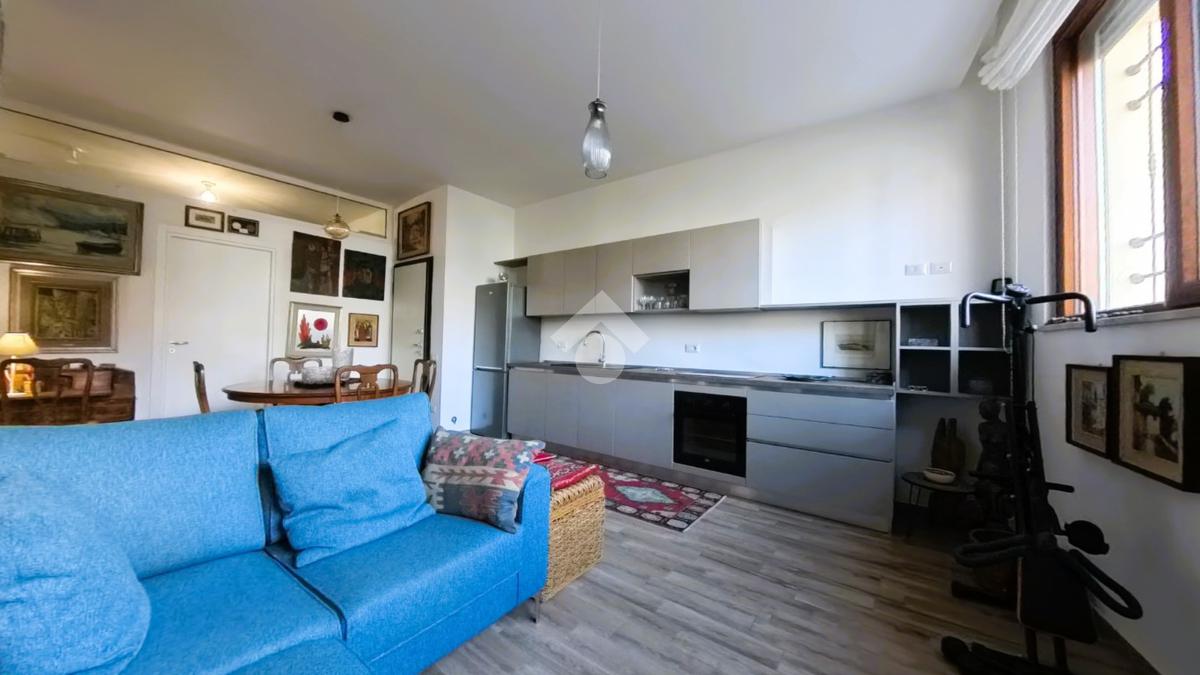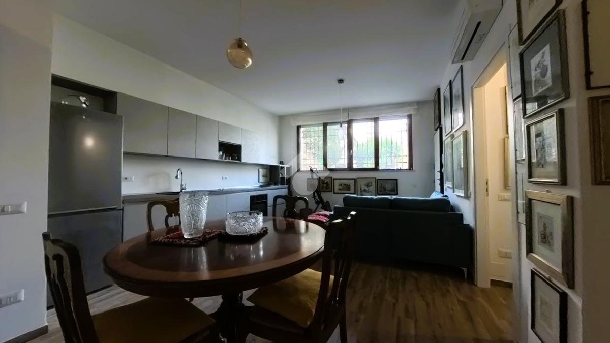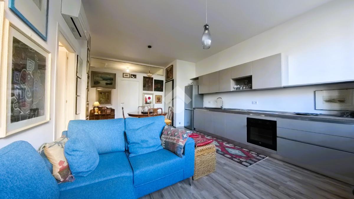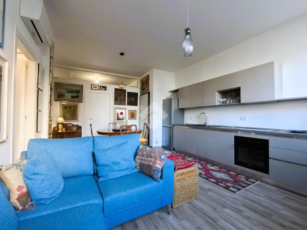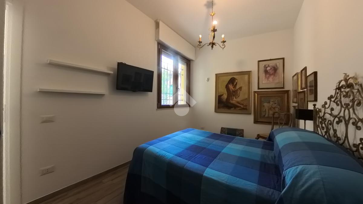Da ingresso indipendente su piccolo portico con cancelletto, raggiungiamo la zona giorno, ampia con angolo cucina; seguono, una cabina armadio/studio e piccolo ripostiglio. La zona notte ha due bagni, uno finestrato e l'altro con box-doccia ed una camera matrimoniale.