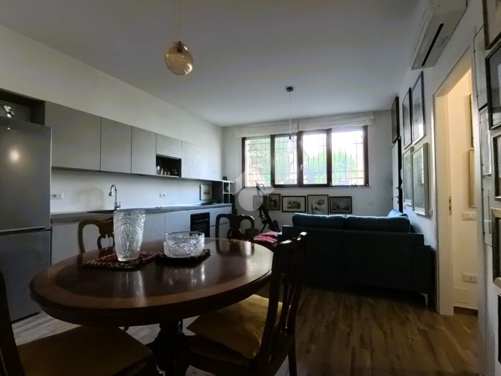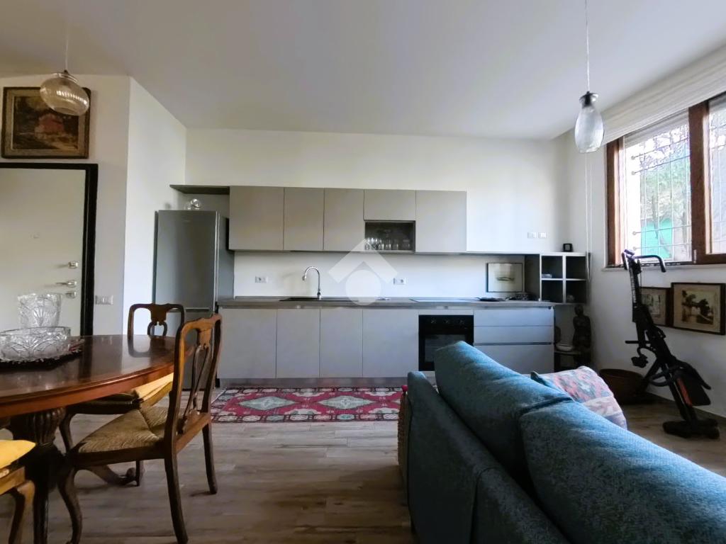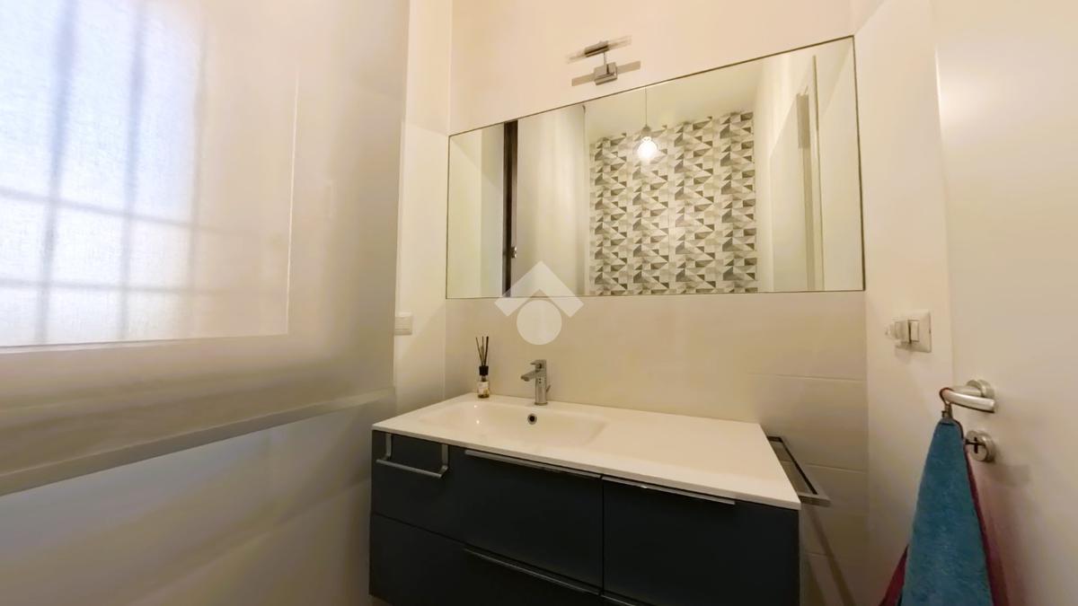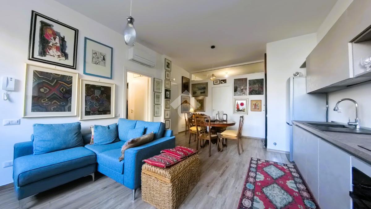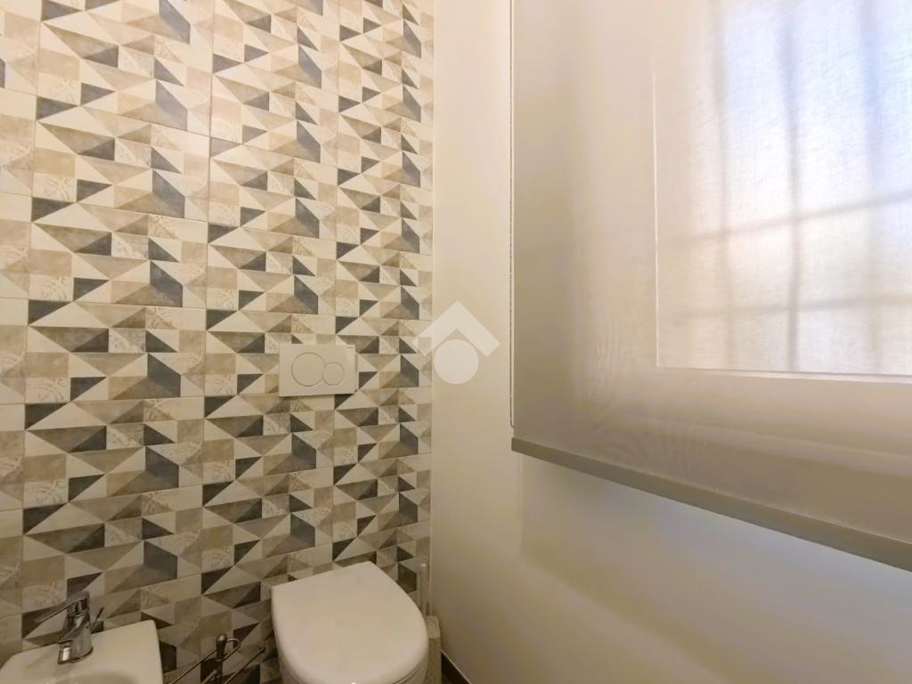Da ingresso indipendente su piccolo portico con cancelletto, raggiungiamo la zona giorno, ampia con angolo cucina; seguono, una cabina armadio/studio e piccolo ripostiglio. La zona notte ha due bagni, uno finestrato e l'altro con box-doccia ed una camera matrimoniale.