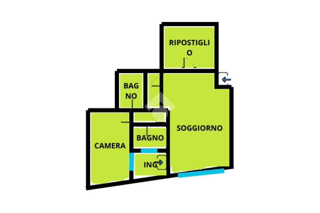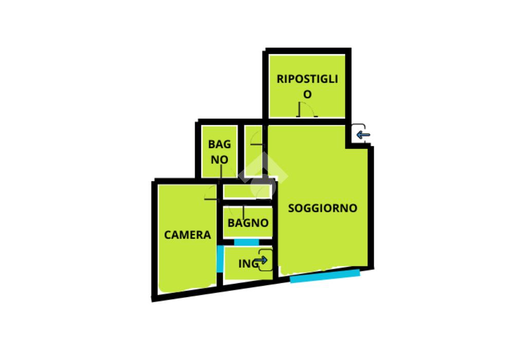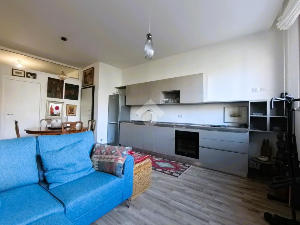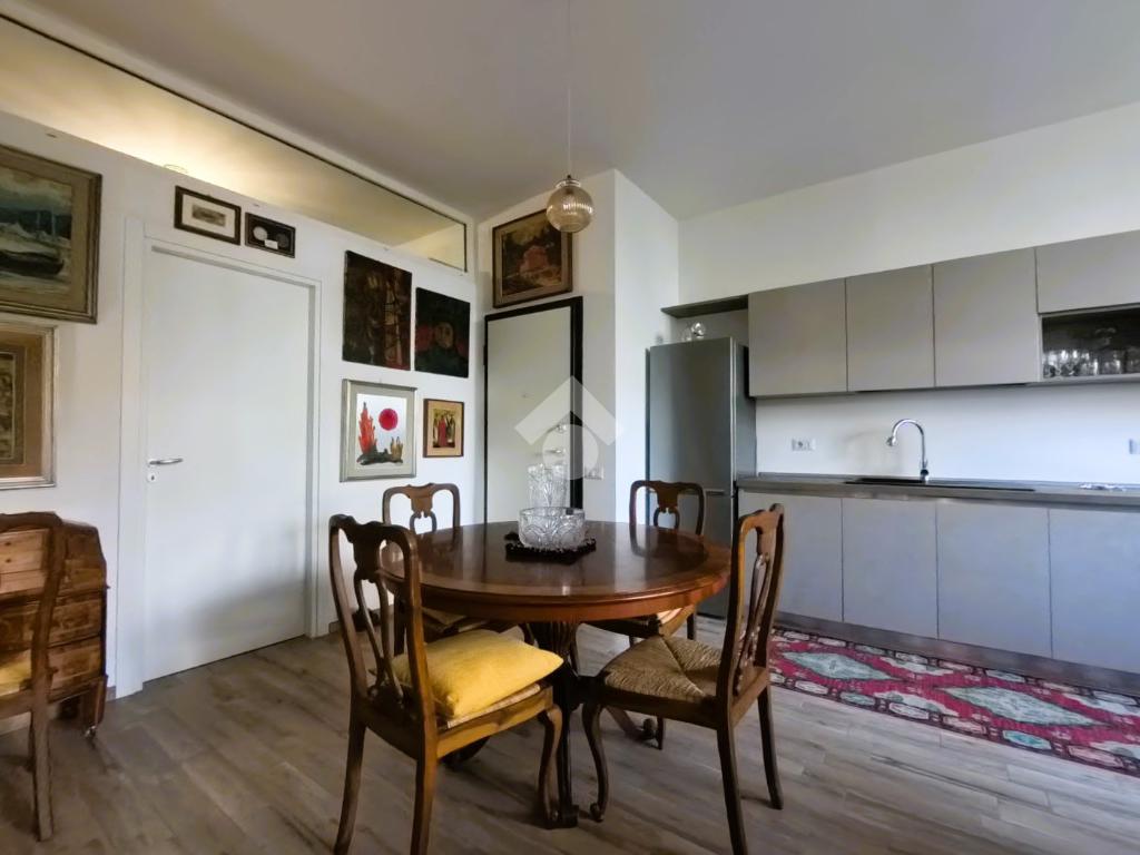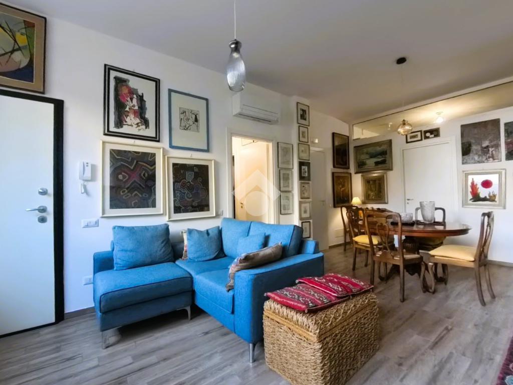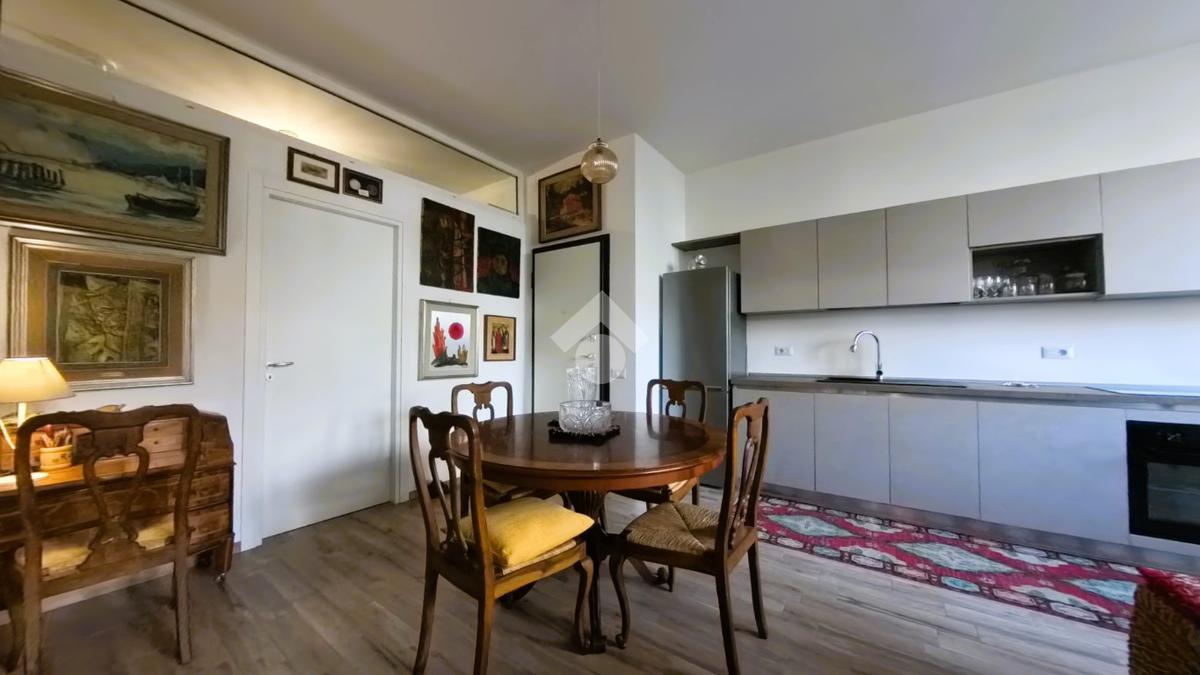 Da ingresso indipendente su piccolo portico con cancelletto, raggiungiamo la zona giorno, ampia con angolo cucina; seguono, una cabina armadio/studio e piccolo ripostiglio. La zona notte ha due bagni, uno finestrato e l'altro con box-doccia ed una camera matrimoniale.