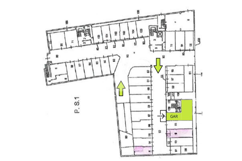 Il box si raggiunge da accesso privato del complesso residenziale, con rampa da piano terra e basculante automatizzata; dal corridoio condominiale si arriva al garage con saracinesca. Collegata internamente alla palazzina con ascensore al piano S1.