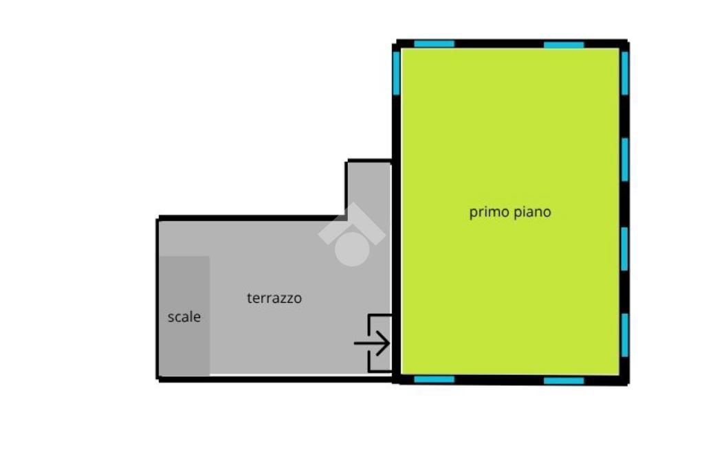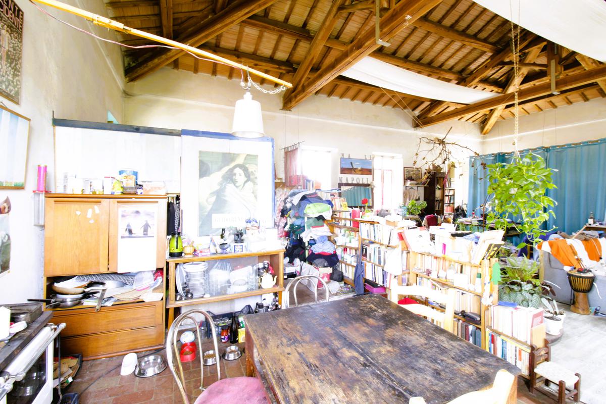 Il primo piano è raggiungibile tramite scala esterna. Dal magnifico terrazzo di circa 80 mq si accede all’abitazione di 120 mq attualmente open space, resa totalmente personalizzabile grazie all’eliminazione delle pareti divisorie.