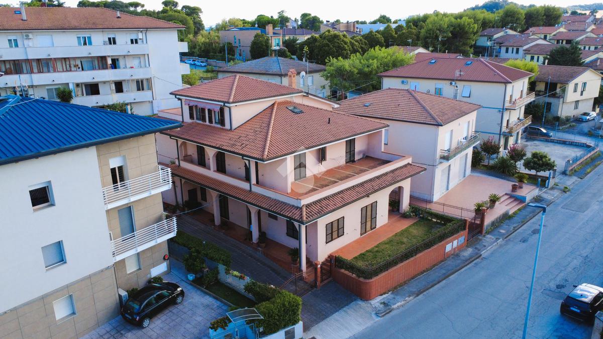 Proponiamo in vendita una splendida villa indipendente, sopraelevata e ristrutturata negli anni '90, di 445 mq situata in una posizione tranquilla ma ben collegata, nel quartiere esclusivo di Villa Eugenia. Zona residenziale tranquilla, in posizione strategica per raggiungere il centro o il paese superficie complessiva di 445 mq è distribuita su tre livelli, con ambienti ampi, luminosi e ben distribuiti: garage di ben 145 mq; Terrazzo panoramico di 100 mq, perfetto per momenti di relax all’aperto, pranzi e cene con vista; Giardino privato di 150 mq, curato e riservato, ideale per famiglie e amanti del verde; L'INTERNO: 5 camere da letto spaziose e luminose, soggiorno accogliente e sala da pranzo separata con accesso al portico, cucina abitabile con annessa dispensa, 6 bagni totali, ben rifiniti e funzionali, 2 studi, mansarda abitabile adibita a zona hobby, terrazzi abitabili su più livelli, vivibili. La villa si presenta con finiture di pregio tipiche degli anni '90, con possibilità di personalizzazione; struttura solida e ben conservata, pronta per essere ulteriori informazioni contattataci al 3895275992 - 073347374, oppure vieni a trovarci a Civitanova Marche, Corso Umberto I 162 o Viale Vittorio Veneto, 209