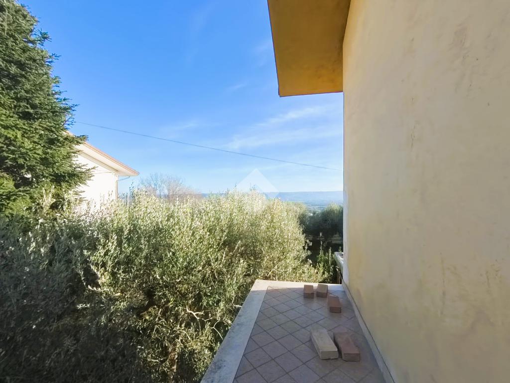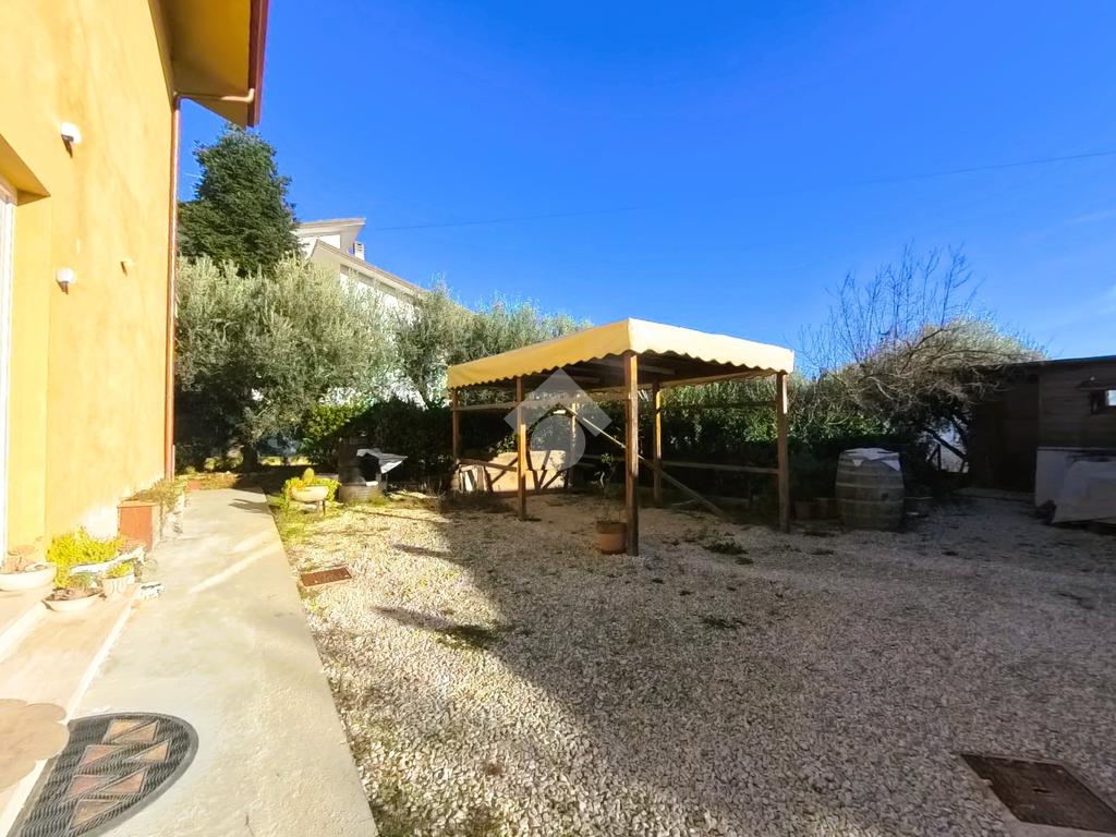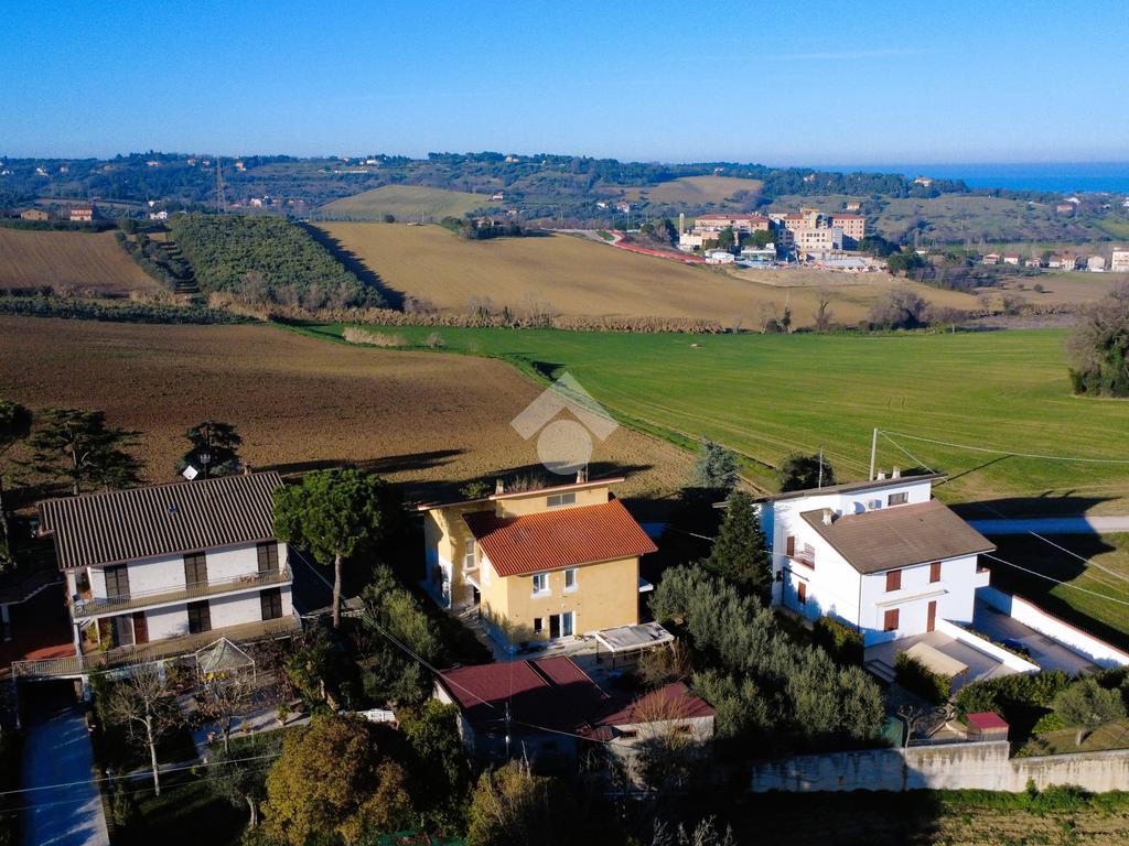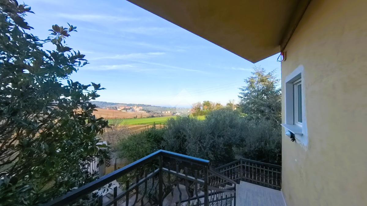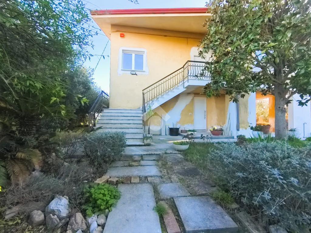 Immersi nel verde con il mare ad est ed il paese vecchio di fronte, in un oasi di tranquillità ma in prossimità di tutti i servizi essenziali, della zona commerciale della città e delle strade ad alta percorrenza.La proprietà si sviluppa su più livelli ed è dotata di doppio accesso, tramite scala interna ed esterna, garantendo funzionalità e autonomia tra i due appartamenti. L’unità al piano terra, in buono stato manutentivo, conserva le finiture originali ed è composta da: Ingresso,Soggiorno, Cucina abitabile separata, Bagno, Lavanderia, Ulteriore stanza polifunzionale.Gli ambienti sono ben distribuiti e facilmente personalizzabili. L’appartamento al primo piano è stato completamente rinnovato con interventi di qualità e impiantistica aggiornata. Gli spazi risultano moderni, luminosi e pronti da Accesso da pianerottolo esterno, Cucina separata, Ampio soggiorno, Tre camere matrimoniali, Due bagni finestrati, Due balconiDotazioni e migliorie: Infissi con doppio vetro, Impianto elettrico nuovo, Impianto di allarme su tutta la struttura, Tapparelle motorizzate in alluminio, Predisposizione per telecamere esterne, Collegamento a rete idrica, metano, fognatura e depuratore. Al secondo piano la Soffitta comoda e funzionale, ideale come spazio deposito o DI DOPPIE LINEE DI ACQUA E METANO PER LE SINGOLE UNITA'.Il villino è circondato da una corte privata di circa 1.000 mq, in gran parte adibita a giardino, ideale per famiglie, animali domestici o per chi desidera ampi spazi verdi privati. Il perimetro dell’abitazione è pavimentato e completa la proprietà un portico esterno, Presente garage di 40 proprietà è completamente recintata e dotata di cancello elettrificato, a garanzia di privacy e sicurezza.La soluzione rappresenta un’opportunità ideale per nuclei familiari numerosi, per genitori e figli che desiderano vivere vicini mantenendo la propria indipendenza.